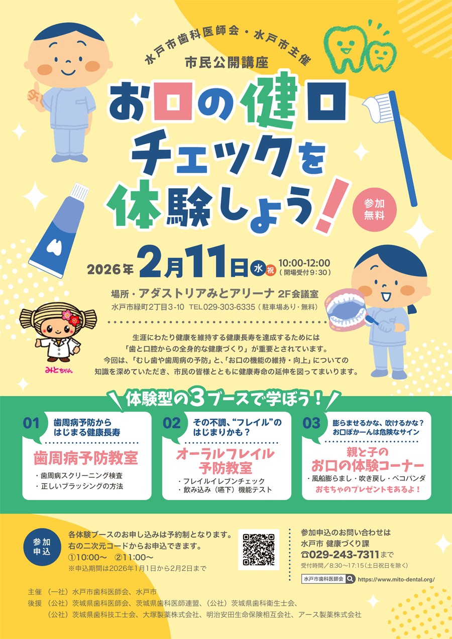 水戸市歯科医師会は、地域の皆様の口腔内の健康と、治癒・予防・境域活動を推進しています。